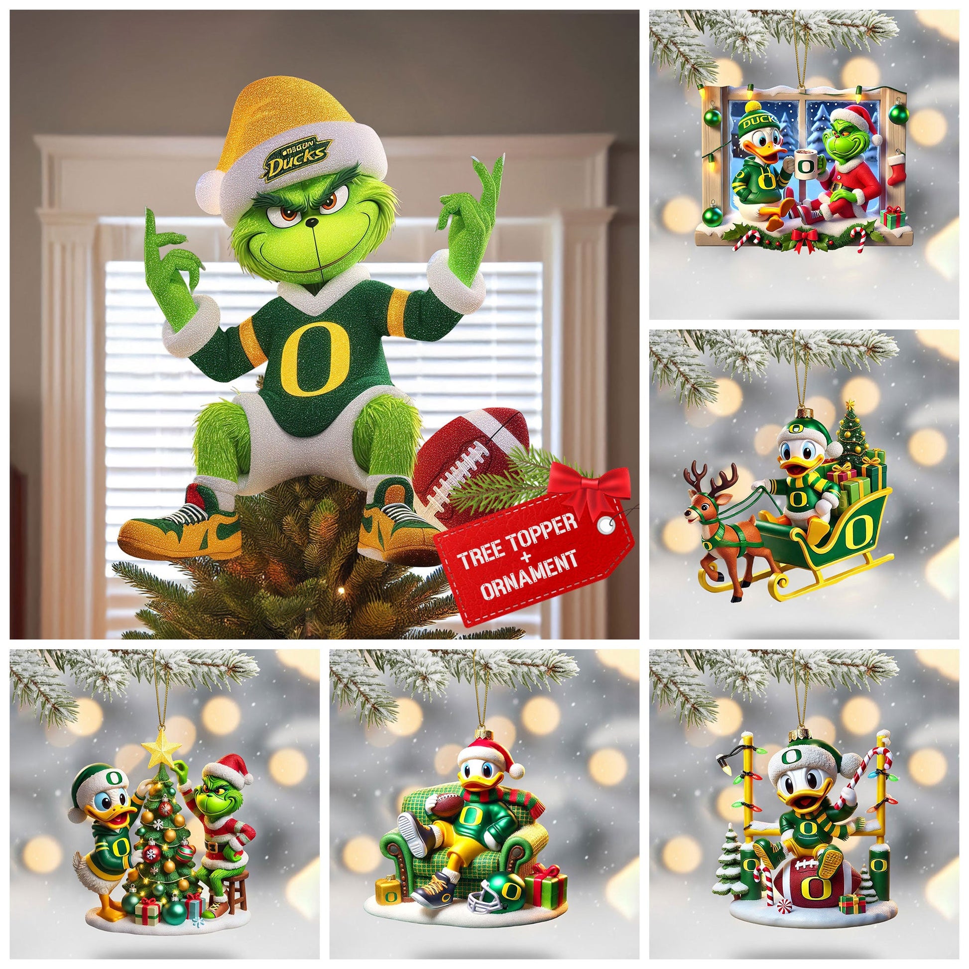 - 1 Exclusive Tree Topper Ornament - The standout centerpiece, featuring a festive character in team colors to crown your Christmas tree with holiday spirit.